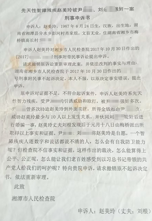 在湖南省湘潭市湘乡市梅桥镇横铺村高长谭家组,有这样一个特殊的家庭,他们本就深陷生活的泥沼,却遭遇了接二连三的沉重打击,令人痛心疾首。家中的女主人赵美玲,持有智力残疾四级残疾证,2017年经湖南省芙蓉司法鉴定中心鉴定为精神发育迟滞(轻度)。尽管她平时能够与人正常交流,生活起居也能自理,还能做饭、干农活,但在心智上,她就像一个单纯的孩子,缺乏对事物的规划和判断能力,也几乎没有反抗他人的意识。
