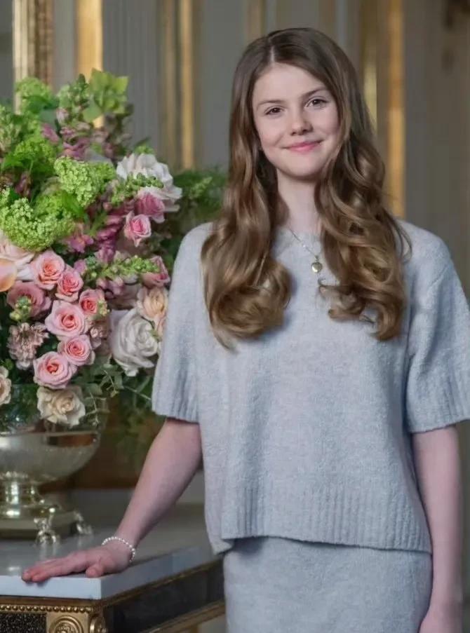 埃斯特拉公主,这位年轻的瑞典王位继承人,近日迎来了她的13岁生日。王室发布的官方照片中,她身着优雅的灰色套装,一头微卷的长发自然垂落,展现出青春少女的甜美与自信。镜头前的她,眼神坚定,举止大方,颇具未来女王的风范。