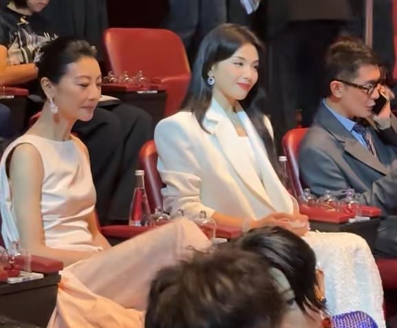 再看第一排,绝对是顶流集中营。张柏芝刚一到场,工作人员就一路小跑把她护送到了座位上,那仪式感就不是一般明星能享受的。坐下后,她和李冰冰聊得非常投机,笑声不断。而坐在第二排的陈慧琳时不时回头瞅瞅两人,估计她想搭话却苦于找不到机会。不得不说,咖位差距在现场表现得淋漓尽致——没到那个层面的,哪怕再努力,也难融入“顶流圈子”。