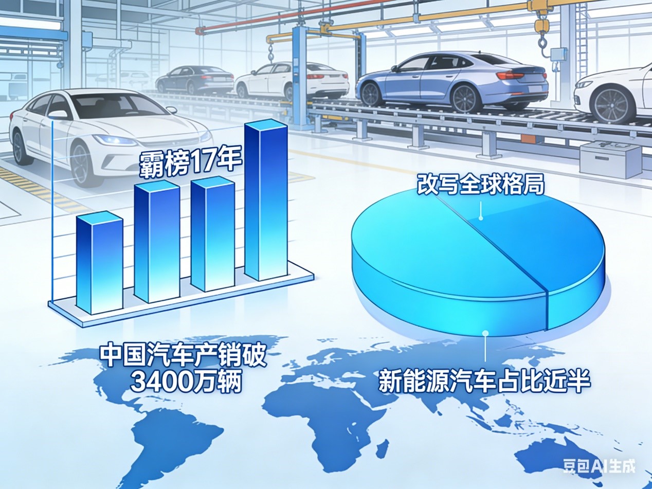 当全球汽车产业在变革中重塑格局,中国汽车工业再次交出震撼答卷。2025年,中国汽车产销双双突破3400万辆大关,连续17年稳居全球首位。更值得关注的是,新能源汽车销量占比逼近50%,L2级智能驾驶渗透率突破64%,这意味着每卖出两辆新车中就有一辆是新能源车,每三辆新车中有两辆具备高级辅助驾驶功能。这场由电动化、智能化双轮驱动的产业变革,正推动中国从汽车大国向汽车强国实质性跨越。