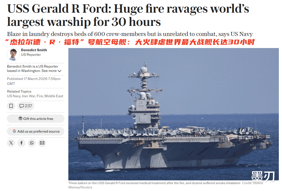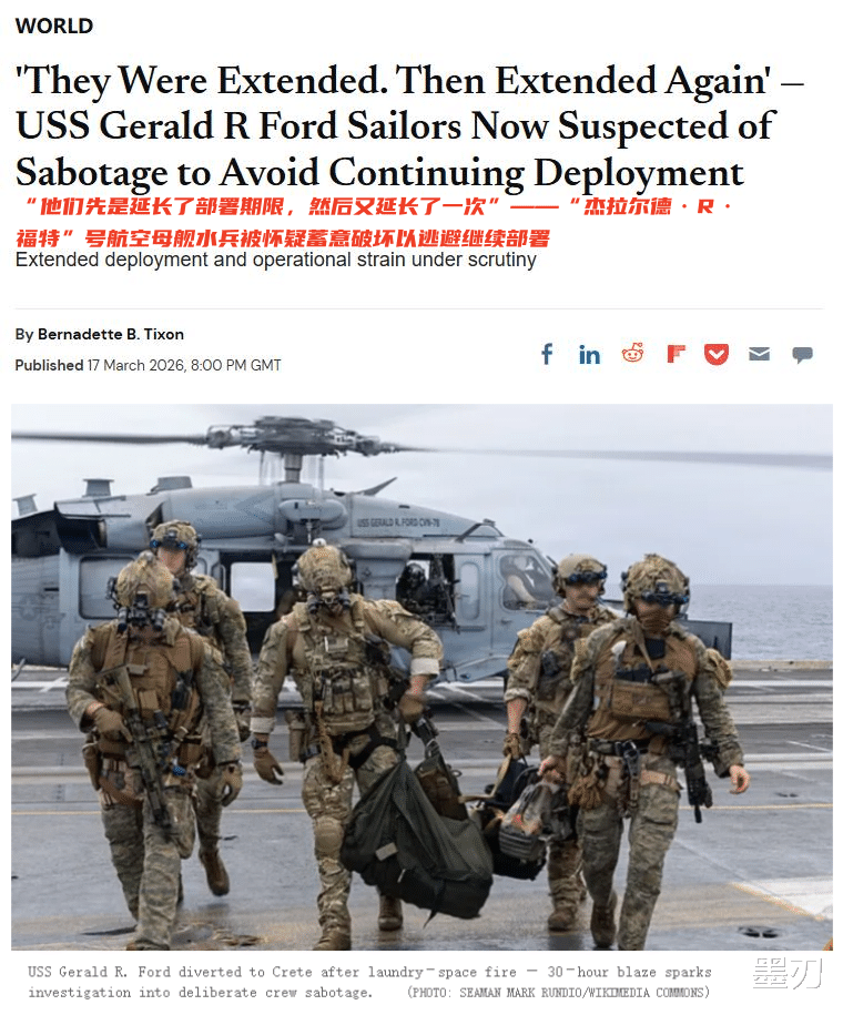 一边是对伊朗的激烈战事,一边是自家水兵连睡觉的床都没了(床位被烧毁,只能睡地板),洗不了衣服,甚至还要从在建的新舰“肯尼迪”号上紧急调运1000张床垫来救急。