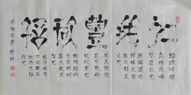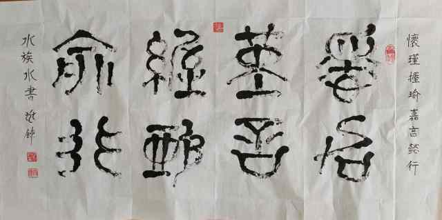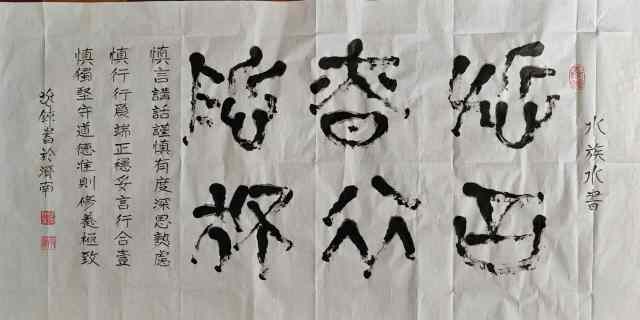 水族水書:怀瑾握瑜,心藏清辉;嘉言懿行,品自高洁。以良善为本,以正直为骨,出言有尺,行事有度。修身立德,温润如玉,守初心而不染尘,持正道而明大义。于言行中见风骨,于岁月里显品格,终成君子之风。