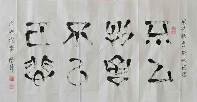 水族水書:不以物喜不以己悲釋文:水書載道,心守其常。外物榮枯,如雲聚散,不擾方寸;己身得失,若潮起落,不動神思。