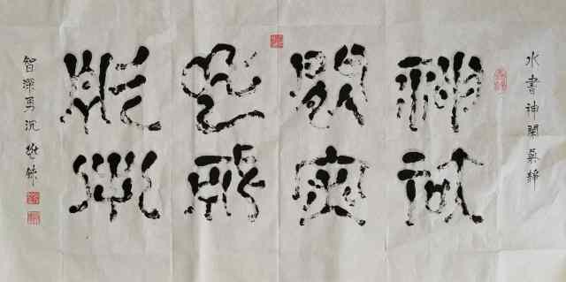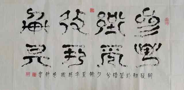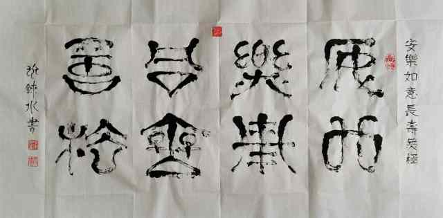 张兆铼的水书艺术独树一帜,极具魅力。从文字书写看,他精准把握水书古老文字的结构与线条特点,运笔古朴又灵动,转折处尽显古韵,点画间传承千年文化脉络。观赏他的水书艺术,宛如翻开一部鲜活的水族史书,能深切感受到水族文化的深厚底蕴与独特魅力 ,是传统与艺术的完美融合。他以一颗敏感而深情的心,将个人的情怀与对世界的理解融入艺术创作之中,使得每一幅作品都散发出一种高远而深邃的境界。