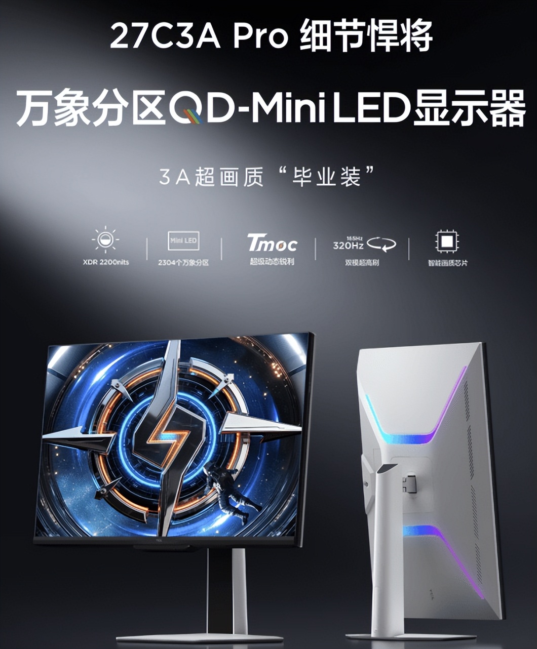 作为手握全产业链自研实力的巨头,TCL早已深耕显示领域四十多年,拥有成熟的QD-Mini LED电视画质技术与调校经验,这次将久经考验并不断迭代至今的电视级万象分区QD-Mini LED技术应用在桌面端的显示器,打造出的这款“细节悍将”27C3A Pro可谓完美兼顾3A游戏沉浸感与高端影音体验,为追求极致体验的玩家提供了一步到位的完美答案。