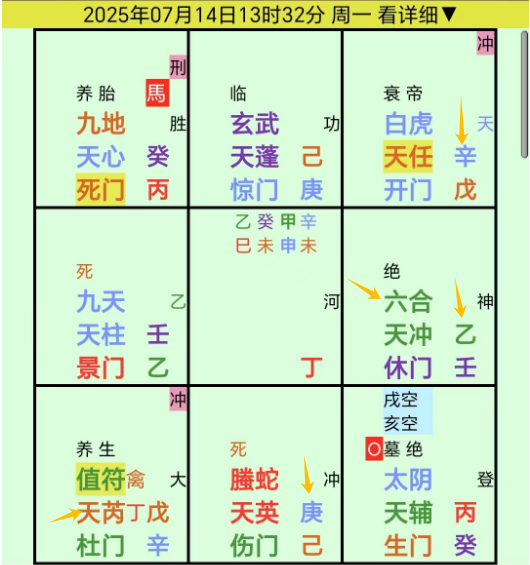 上乘值符为稀少罕见的疾病,而克病之方在震宫东方,壬+乙小蛇得势,则有中医慢慢调理之像,震为木也代表中药,乙为中医,其实像这种病也可以坚持练站桩,时间一长就可以慢慢调节修复身体的,再配合奇门斗转星移布局辅助,在丑日丑时从艮宫东北方取走,旧的大的物件,和尖锐锋利的物体,把此处最好弄通透清理干净,在配合中医调理辅助练站桩就能慢慢改善,平常煎药之方最好在东方,所起到的药效是最大的。
