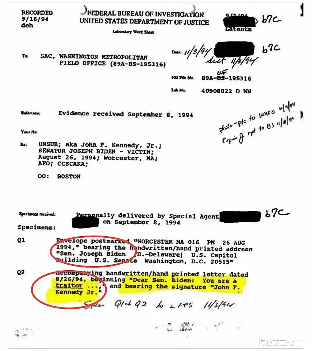下图有一份与拜登的内容,1999年小肯尼迪坠机事件可能与他有关。
