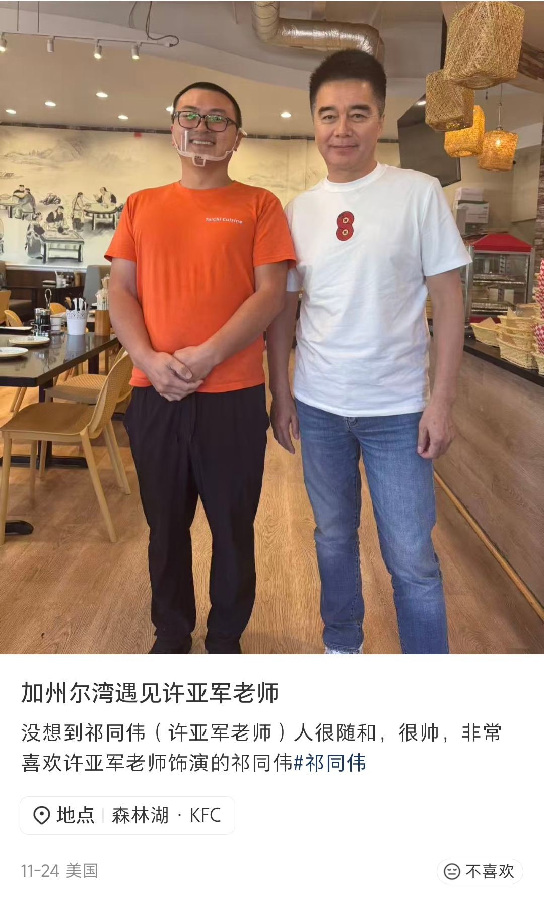 这时候可能有网友又问了,这个网友偶遇的“许亚军”会不会认错人了,我不信他前妻去世,他一点动作没有。