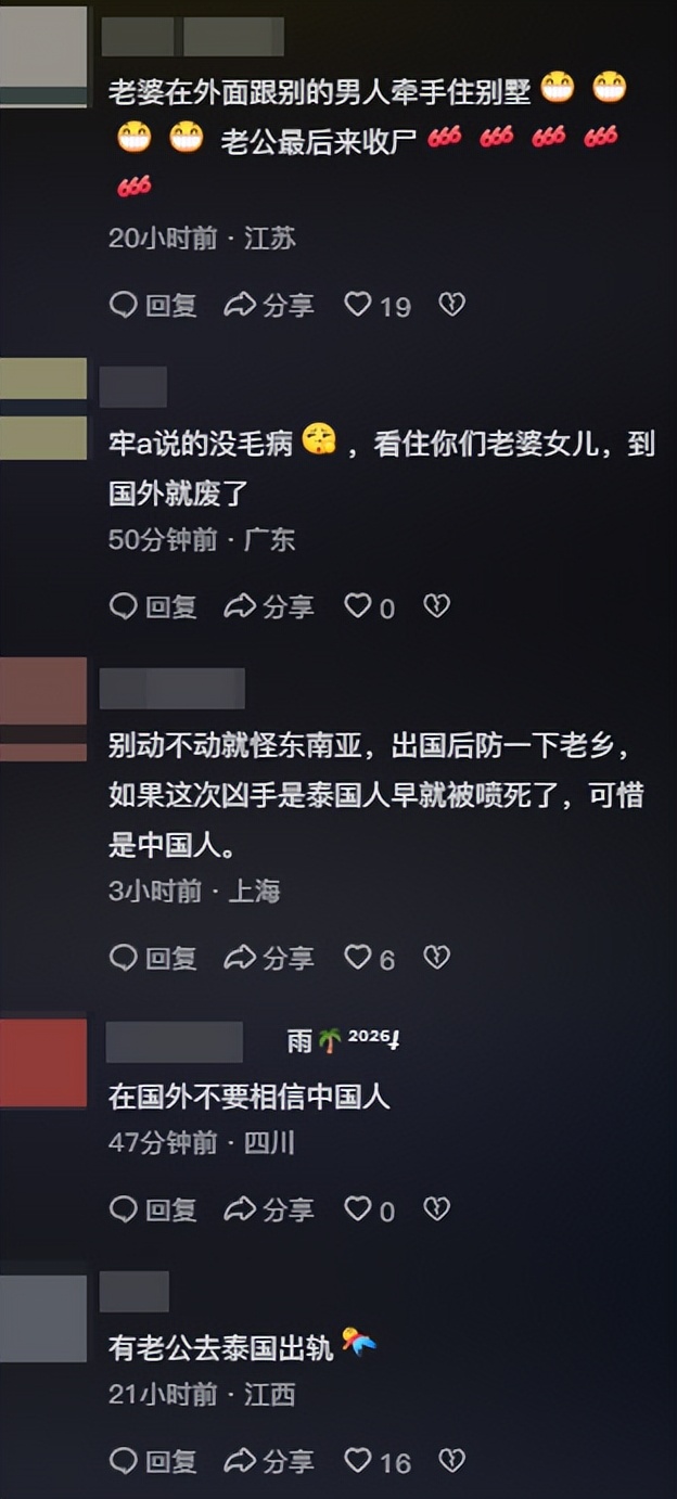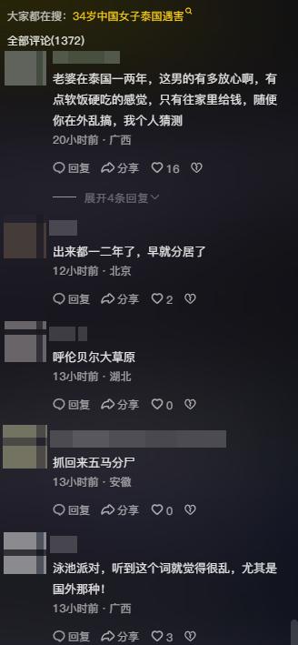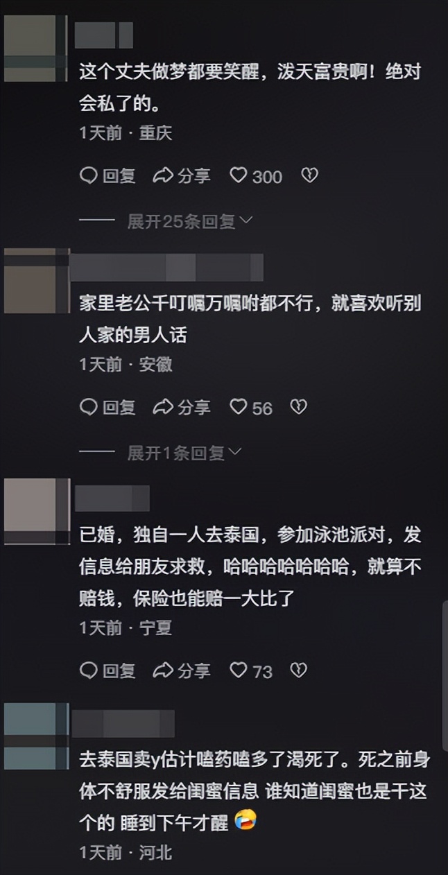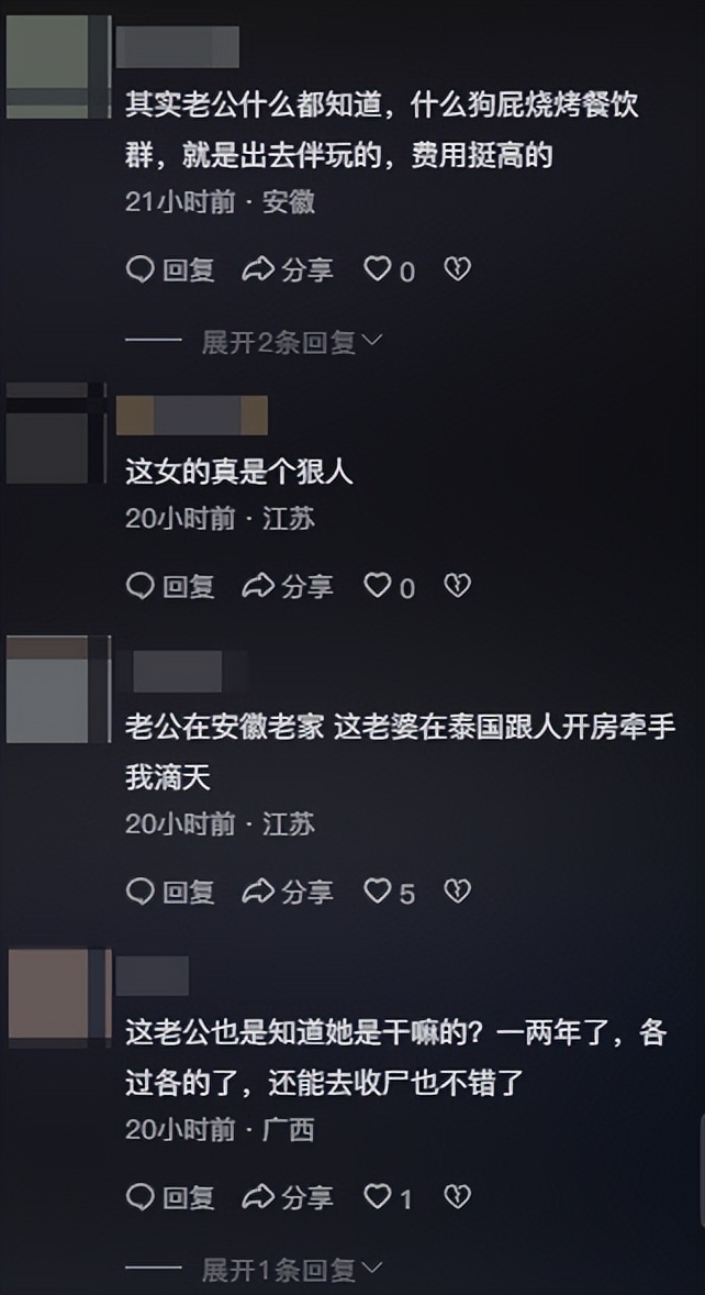 对于这个回答,网友更加沸腾了,更是猜测,老婆在泰国一两年,这男的有多放心,有点软饭硬吃的感觉,只有往家里给钱,随便你在外乱搞。