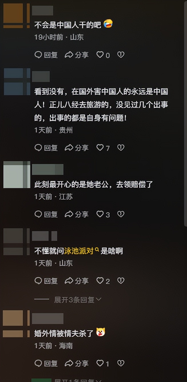 有网友表示,在国外害中国人的永远是中国人!正儿八经去旅游的,没见过几个出事的,出事的都是自身有问题!