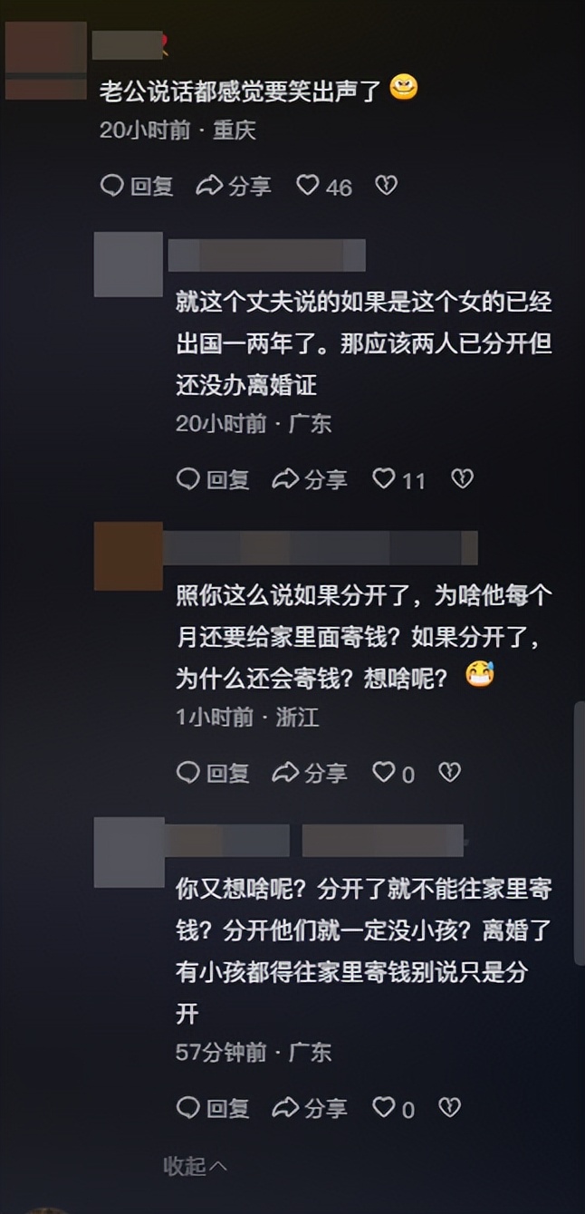 还有不少人质疑女子和老公之间的关系,或许两人早就已经出现了问题,只是一直没离婚,毕竟谁能忍受自己的妻子在外面两年不回家。