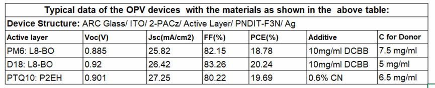 面向未来:协同推动 OPV 商业化落地随着建筑光伏一体化(BIPV)、可穿戴电子、室内光伏等新兴场景兴起,市场对柔性、半透明、低照度响应的光伏组件需求激增。ChemWhat的产品布局正契合这一趋势——其提供的PM6:L8-BO(18.78% PCE)、D18:L8-BO(20.24% PCE)及PTQ10:PY-IT等高效体系已被广泛用于柔性电池研发;而 2-PACz 等界面修饰材料则在提升器件开路电压与长期稳定性方面发挥关键作用。