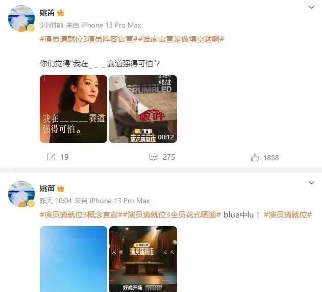 更讽刺的是,节目组删镜头之前,还保留着姚笛的宣传,微博置顶的节目预告,简直就是个笑话。