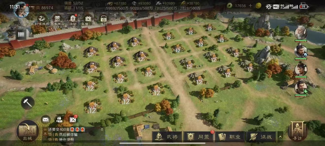 更妙的是,游戏的“人情家底”同样丰厚。传统SLG常被吐槽“一个人打天下”,但在《三国:谋定天下》里,同盟成员就像广德的街坊邻居——司仓职业玩家会主动分享资源,青囊职业玩家会帮你治疗伤兵,天工职业玩家会连夜建好攻城器械。这种“有事一起扛,有宝一起挖”的氛围,让每个新手都能快速找到归属感,就像第一次去广德的游客,总能被热情的当地人拉着尝蒿子馍馍。