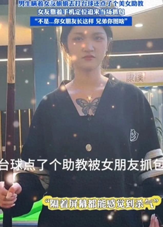 男生今日答应和女友一起去吃饭的,却瞒着她偷偷来到了台球厅,还点了一位美女助教相伴。