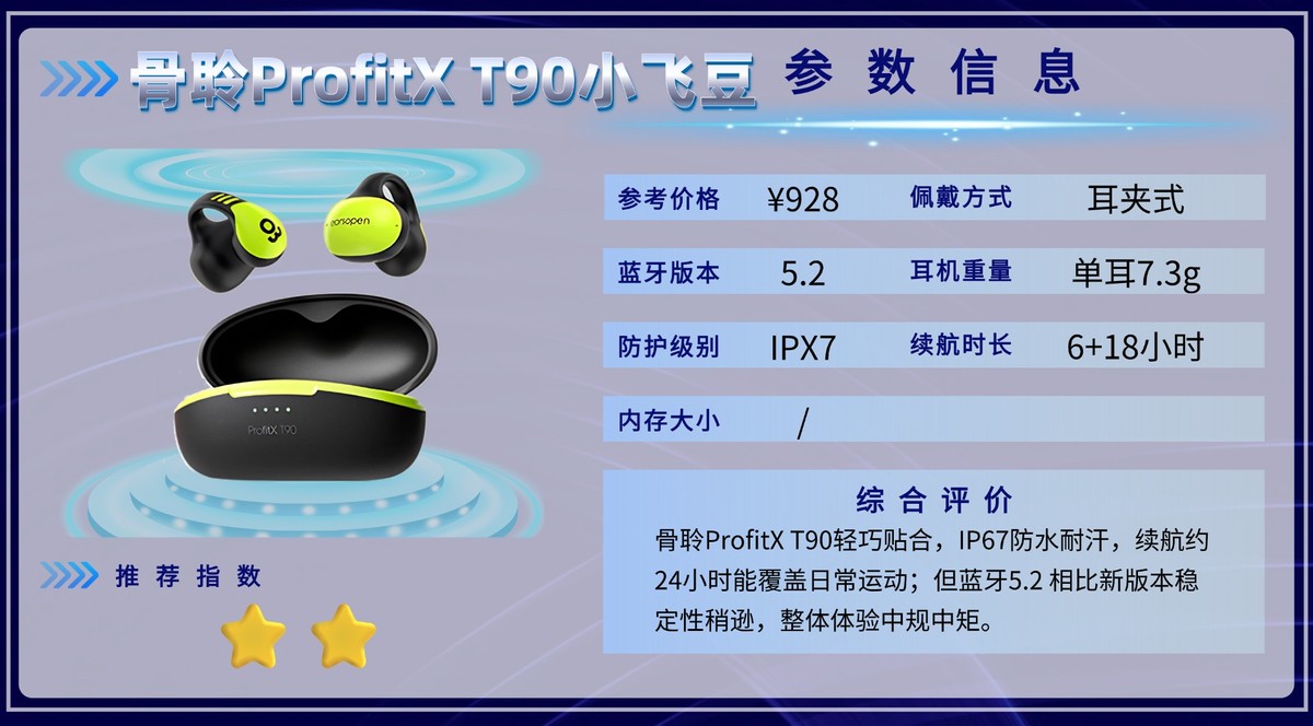 T90小飞豆适合跑步、骑行及短时高强度训练,佩戴稳固、轻便且防护到位;不适合水下运动或对音质层次有高要求的静态听歌环境,触控在湿手情况下略不够顺手,整体偏运动功能型。