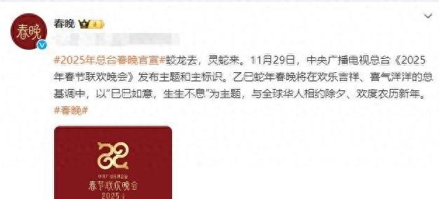 2025年是农历乙巳蛇年,春晚的主题定为“巳巳如意,生生不息”。