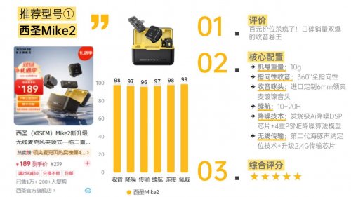 西圣多年来坚持“发烧级”产品理念,致力于打造音质卓越的麦克风。西圣Mike2采用加强版全指向AI感知麦克风,内置高品质进口定制6mm音头,搭配32位浮点数DSP芯片,配合4重PSNE降噪算法和自研RS™反馈抑制技术,实现98%的声音清晰度和96%的抗噪性。研发阶段,西圣邀请3000多位用户进行音质测试,确保产品性能卓越。因此,西圣Mike2堪称“百元级无线麦克风天花板”。