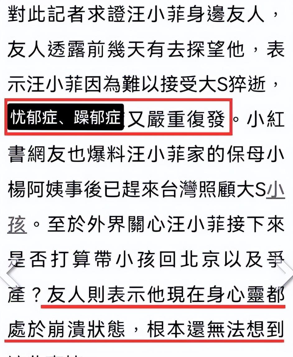 甚至有媒体报道,汪小菲的躁郁症复发,已经到了不能下床的地步。