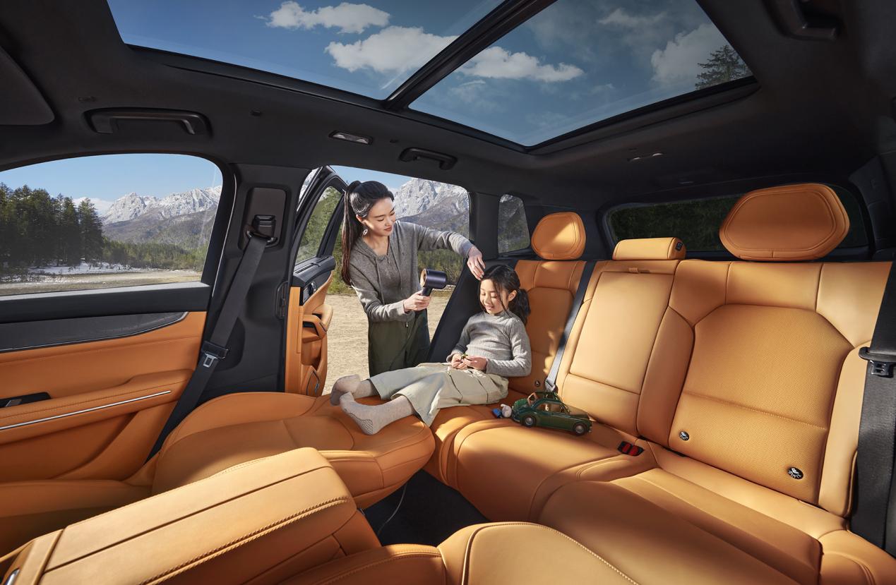 在空间设计上,领克09 EM-P四驱Max摒弃了“为七座而七座”的盲目竞争逻辑,聚焦大五座布局的体验优化。5042mm车长、2984mm轴距的尺寸基础,转化为1366mm同级最宽二排空间、540mm最大坐垫深度与1130mm腿部空间,确保后排乘客即便长途乘坐也能保持舒展姿态。创新性的“一/二排连通沙发床”设计,通过拆卸头枕、放倒座椅,可形成近乎纯平的休憩平面,搭配二排放倒后1522L的后备箱拓展空间,秒变2米“大床房”,精准适配户外露营、长途休憩等多元场景。