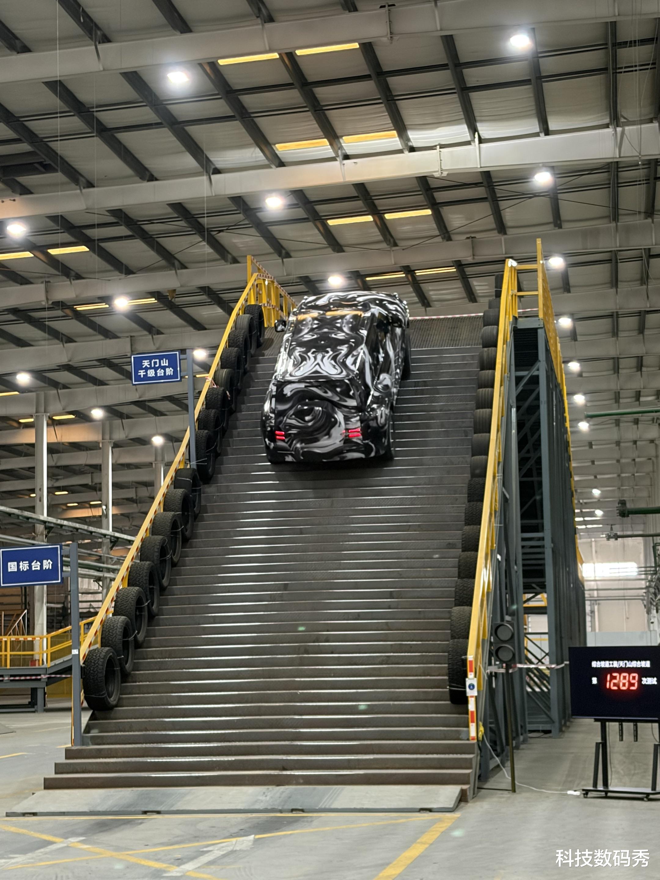 #比亚迪把天门山天梯搬进了厂房#比亚迪厂房惊现天门山同款天梯,这你受得了吗?重度伪装的比亚迪硬派越野轻松攀爬,右下角屏幕上的显示的是第1289次测试,太硬核了。