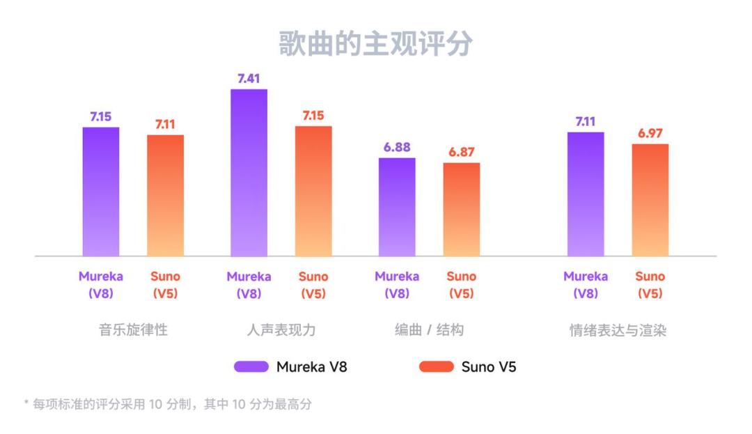 由此可见,从旋律创作到音乐性到可玩性、再到编曲细节、情绪渲染,以及全人群的创作适配,Mureka V8对标Suno V5实现了全维度的技术与体验升级,真正让AI音乐从“好玩”变成了“好用”,有望成为一种新的品类,正式迈入可调控、可打磨、可落地的新阶段。