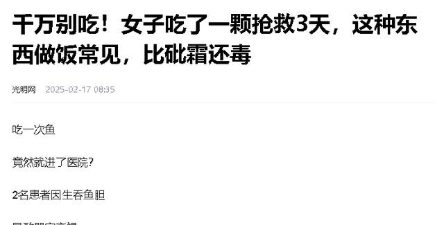 2、原文刊登于光明网2025-02-17发布的关于《千万别吃!女子吃了一颗抢救3天,这种东西做饭常见,比砒霜还毒》的报道;