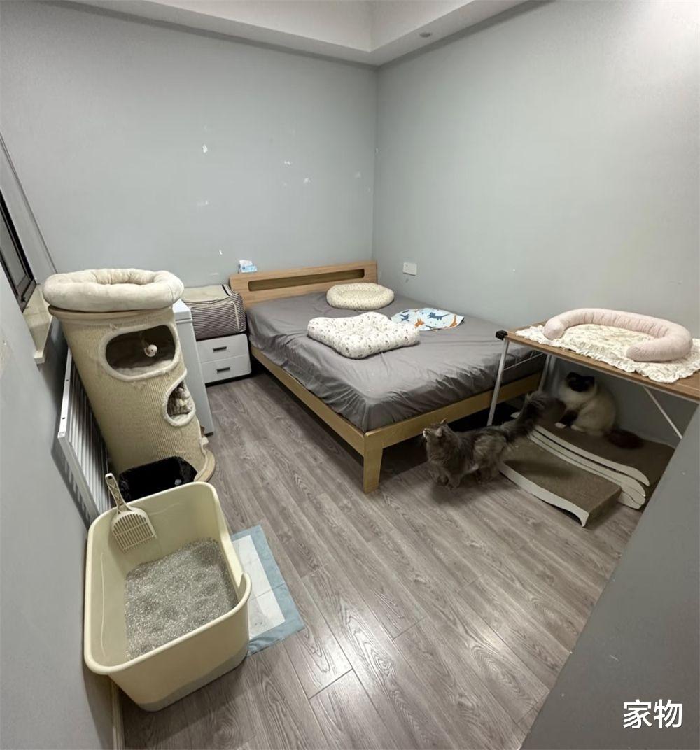 最近我就看到了一位杭州女生(@噜噜大口吃肉),家里养了大大小小5只猫,为了能让这些猫咪有充足的活动空间,她干脆把自己加都改成了一间人猫共住的“猫房”!