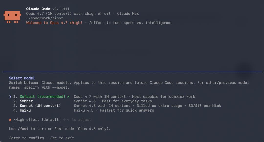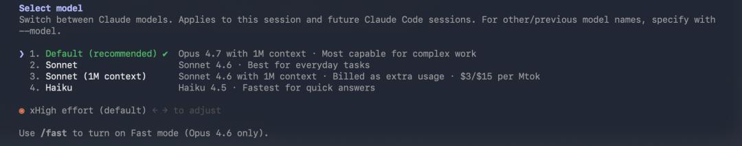 4.7这次在high和max中间加了一档,叫xhigh,extra high的缩写。