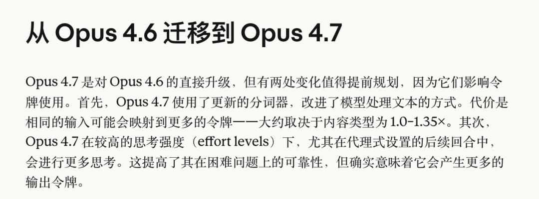 意思就是,你把同一段代码、同一份文档、同一个prompt丢给4.7和4.6,4.7要多吃最多35%的token。