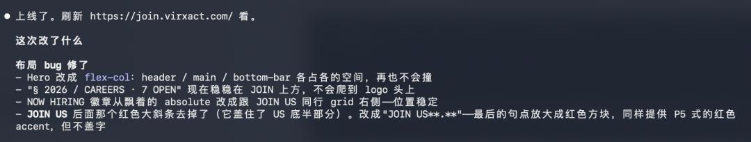 而这次,可能得益于多模态能力的提升,我用Claude Opus 4.7,顺手做了一下我之前要做但是还没来得及做的公司招聘网站,效果出奇的好。