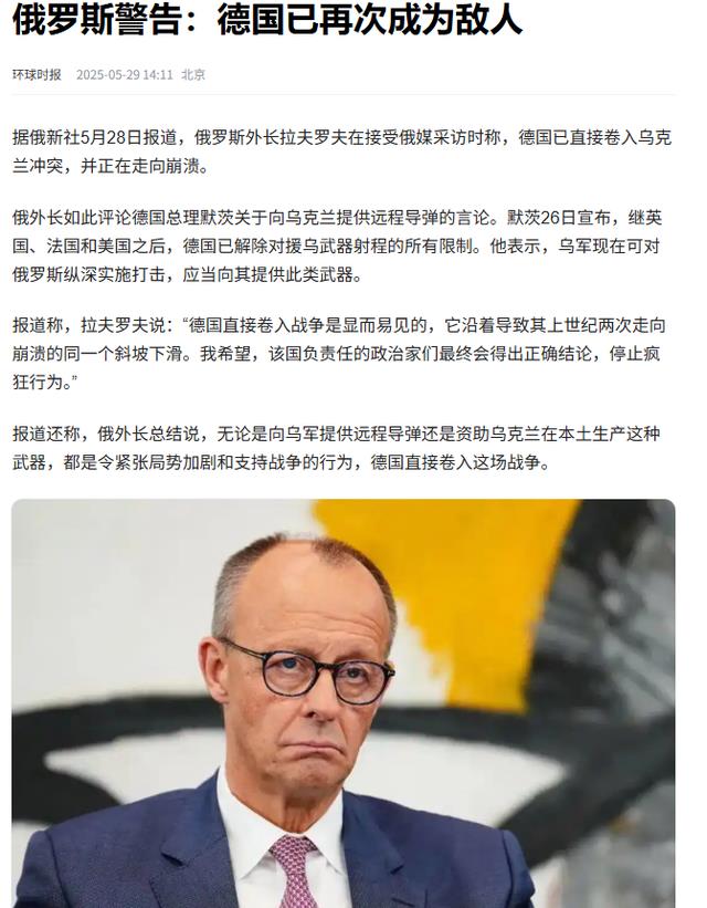 环球时报 2025-05-29 《俄罗斯警告:德国已再次成为敌人》