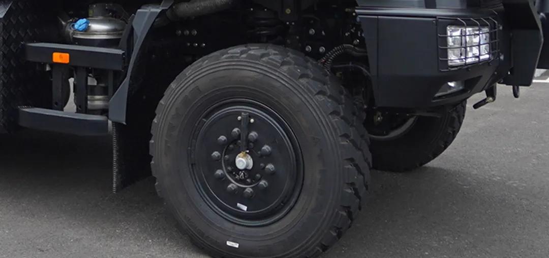 为了应对多变的路况,“流浪者”还选用粗狂花纹的三角牌越野轮胎,这无疑为车辆的抓地力和稳定性加分。此外,它还拥有同级别房车中少见的四轮中央充放气系统,驾驶者可以在车内轻松操作,通过中控台上的控制旋钮实现自动或手动调节。这一设计让驾驶者在面对沙质、戈壁等特殊地形时能迅速调整轮胎压力,以获得最佳的越野性能。通过这一系统,车主能够在极短的时间内应对不同的环境条件,这种独特的设计体现了“流浪者”在技术上的创新和突破。