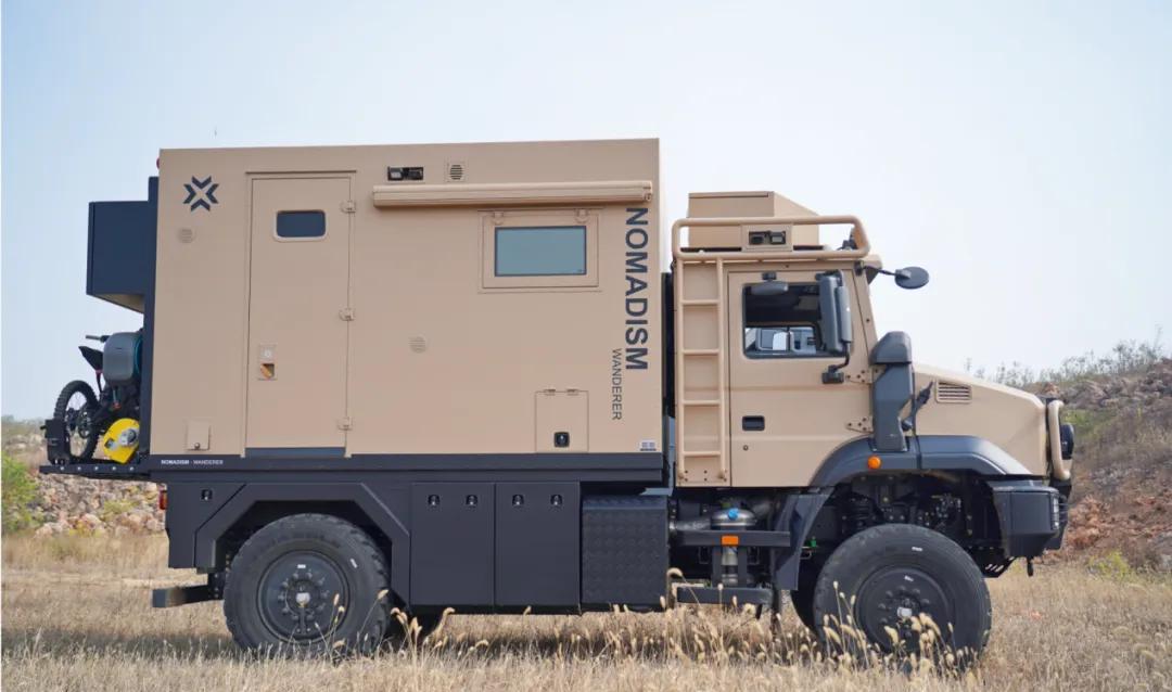当谈到“流浪者”的设计时,我们首先不得不提及它的底盘。“流浪者”基于一汽解放的M41重卡底盘,这一底盘是专为多用途设计的,在军事和民用领域的表现可圈可点。而这一底盘设计的专业化与民用化,无疑给了“流浪者”出色的越野能力和承载能力,确保其在复杂路况中的稳定性。与众不同的是,这款底盘不仅保留了专业越野车的基因,更加注重了现代消费者对舒适性与安全性的需求。
