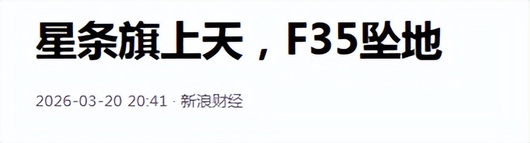 参考资料:新浪财经《星条旗上天,F35坠地》发布时间:2026.3.20