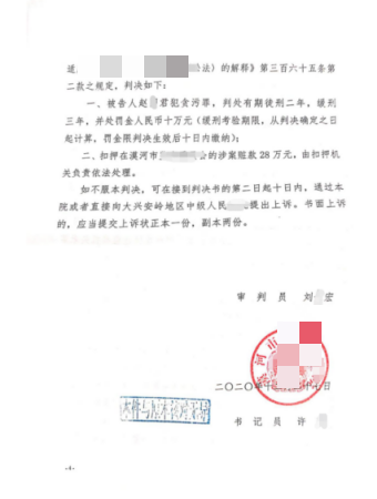 3.更令人费解的是,赵某君强调自己未参与2020年12月27日的庭审,但卷宗内却有包含她签名及“不上诉”表述的该次庭审记录。赵某君回忆,此前应要求在多张空白A4纸上签字并捺印,她对于这些签名材料是否被用于上述笔录表示不解与担忧。与此同时,在判决书送达环节,她遇到了先被要求缴纳罚金后才能获取判决书的情况,这与判决生效后再缴纳罚金的通常司法实践有所不同,该情况也未得到进一步合理说明。