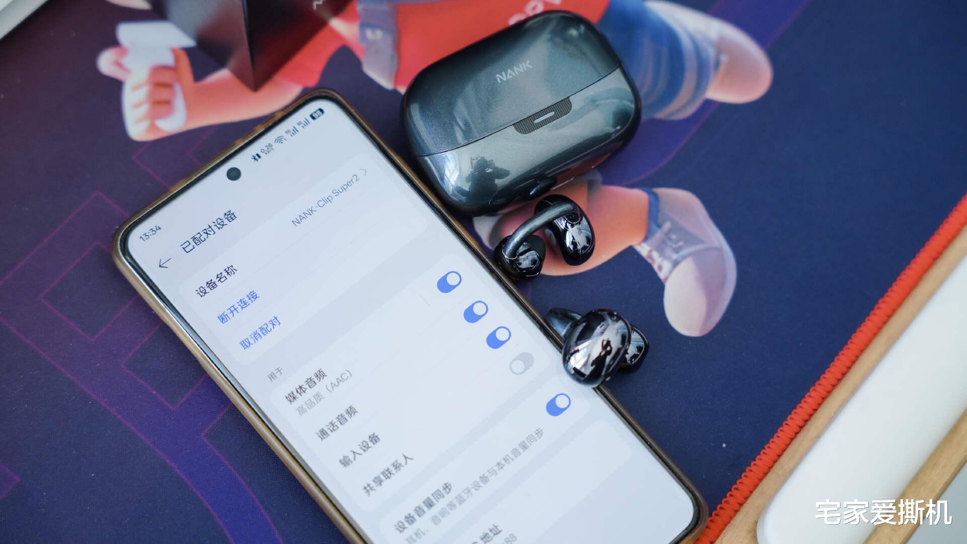 开放式耳机普遍存在音质模糊、漏音严重的痛点,南卡Clip Super2通过硬件升级与技术优化给出了针对性解决方案。其搭载的SuperSound OS3.0声学系统配合量子声频驱动2.0,在三频均衡性上表现出色——低频虽没有入耳式耳机的厚重感,但下潜足够,听流行乐时鼓点清晰有力;中频人声细腻通透,播放民谣或有声书时,人声与伴奏的层次感分明;高频不刺耳,弦乐演奏的细节也能较好呈现。