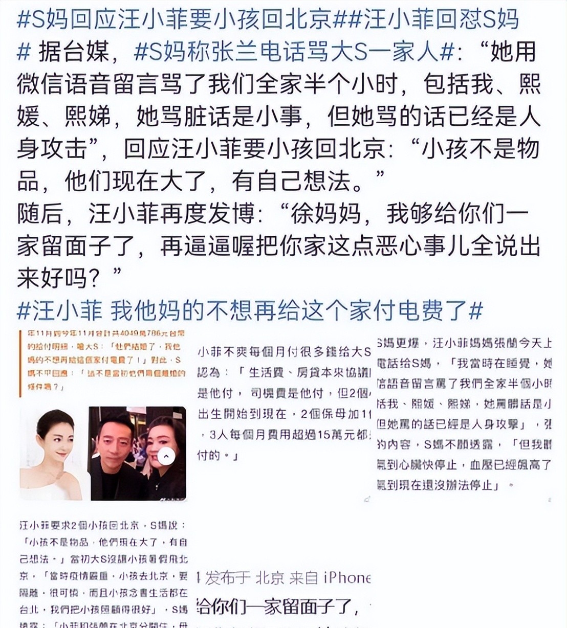 要说这大S,曾经可是偶像剧女王,风光无限,妥妥的人生赢家。可谁承想,这画风一转,离婚大战,撕得那叫一个热火朝天,各种爆料满天飞,简直是大型真人秀现场。她和汪小菲,一个说另一个婚内出轨,另一个说她跟现任早就好上了……总之,各种“猛料”层出不穷,吃瓜群众看得那是目瞪口呆,比看悬疑剧还刺激!这期间,网络上各种站队,吵得不可开交,仿佛整个世界都卷进了这场纠纷。