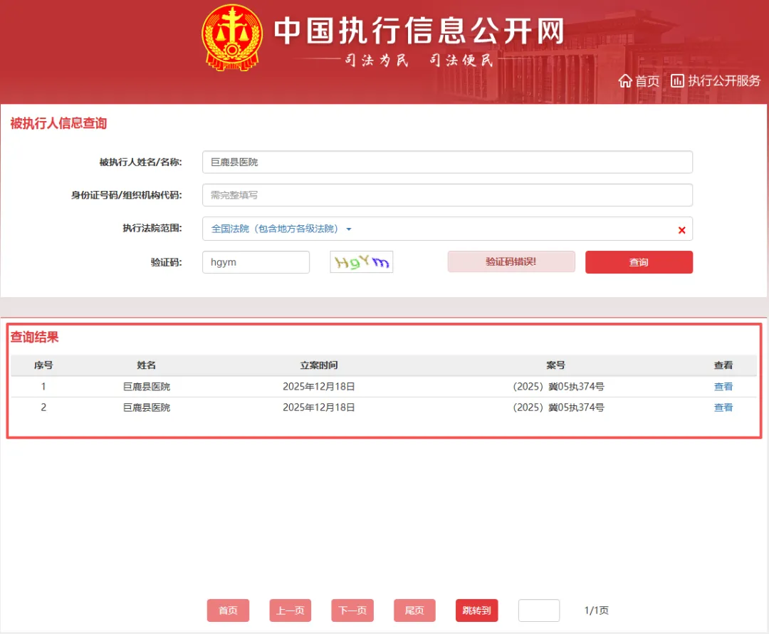 值得关注的是,巨鹿县医院的司法风险也在攀升。中国执行信息公开网显示,截至2026年1月21日,巨鹿县医院有1条被执行记录。具体来看,2025年12月18日,河北省邢台市中级人民法院将巨鹿县医院纳入被执行人名单,案号为(2025)冀05执374号,涉案金额987.31万元。