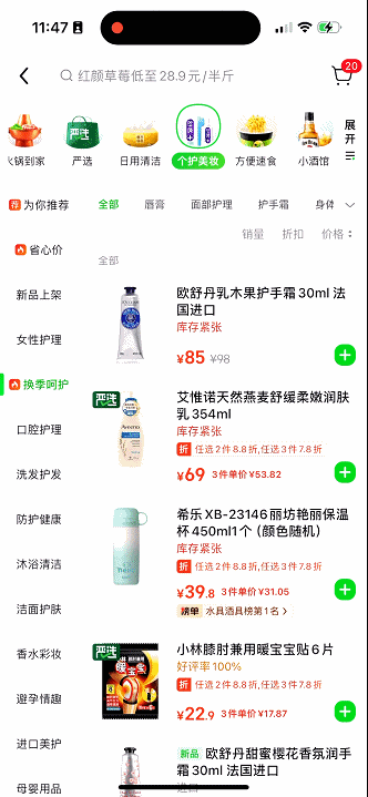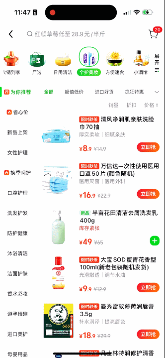 秋冬必备的凡士林润唇膏、应急必需的美宝莲眼唇卸妆液、居家必选的潘婷乳液修护洗发露,下单后半小时就能送到家,简直不要太方便了!