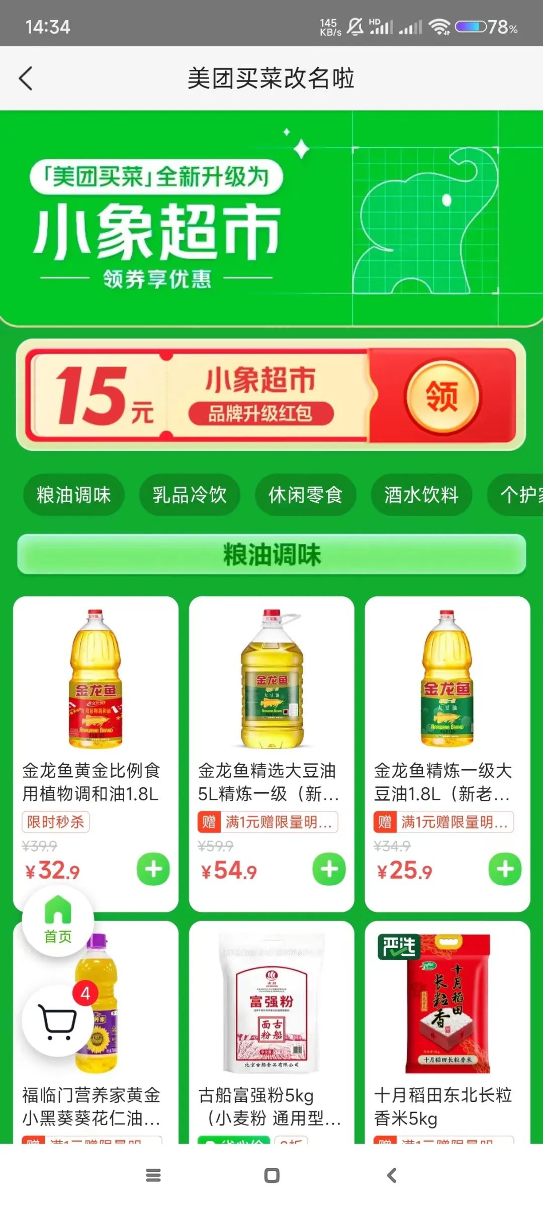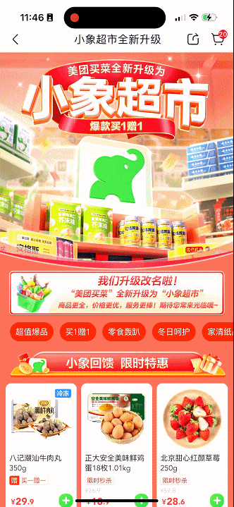 在五周年之际,「美团买菜」正式升级改名为「小象超市」,为大家带来了感恩大回馈。