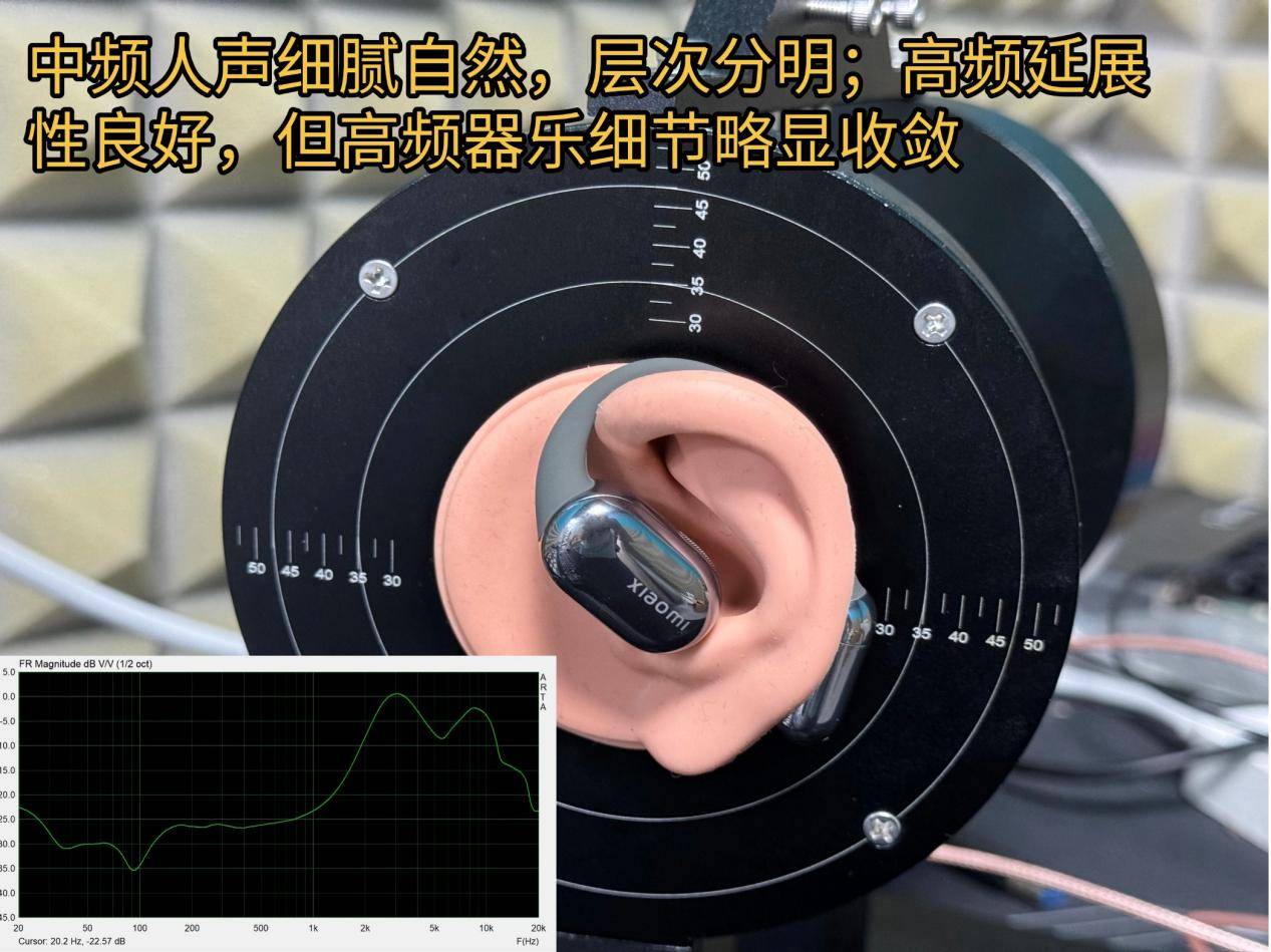 小米开放式耳机 Pro 配备 17×12mm 超大高灵敏度钕磁动圈单元,支持 LHDC 5.0 高解析音频传输协议。低频下潜有力,鼓点节奏感明显;中频人声细腻自然,层次分明;高频延展性良好,但高频器乐细节略显收敛。结合小米自研声学调校技术,耳机能够根据不同环境智能优化音效,满足多场景的听音需求。在试听《Levitating》这类节奏感强烈的曲目时,低频的鼓点力量和整体层次感表现均令人满意。