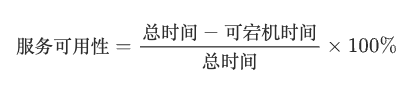 服务可用性=(单实例服务周期总分钟数 - 单实例服务不可用分钟数)/单实例服务周期总分钟数×100%