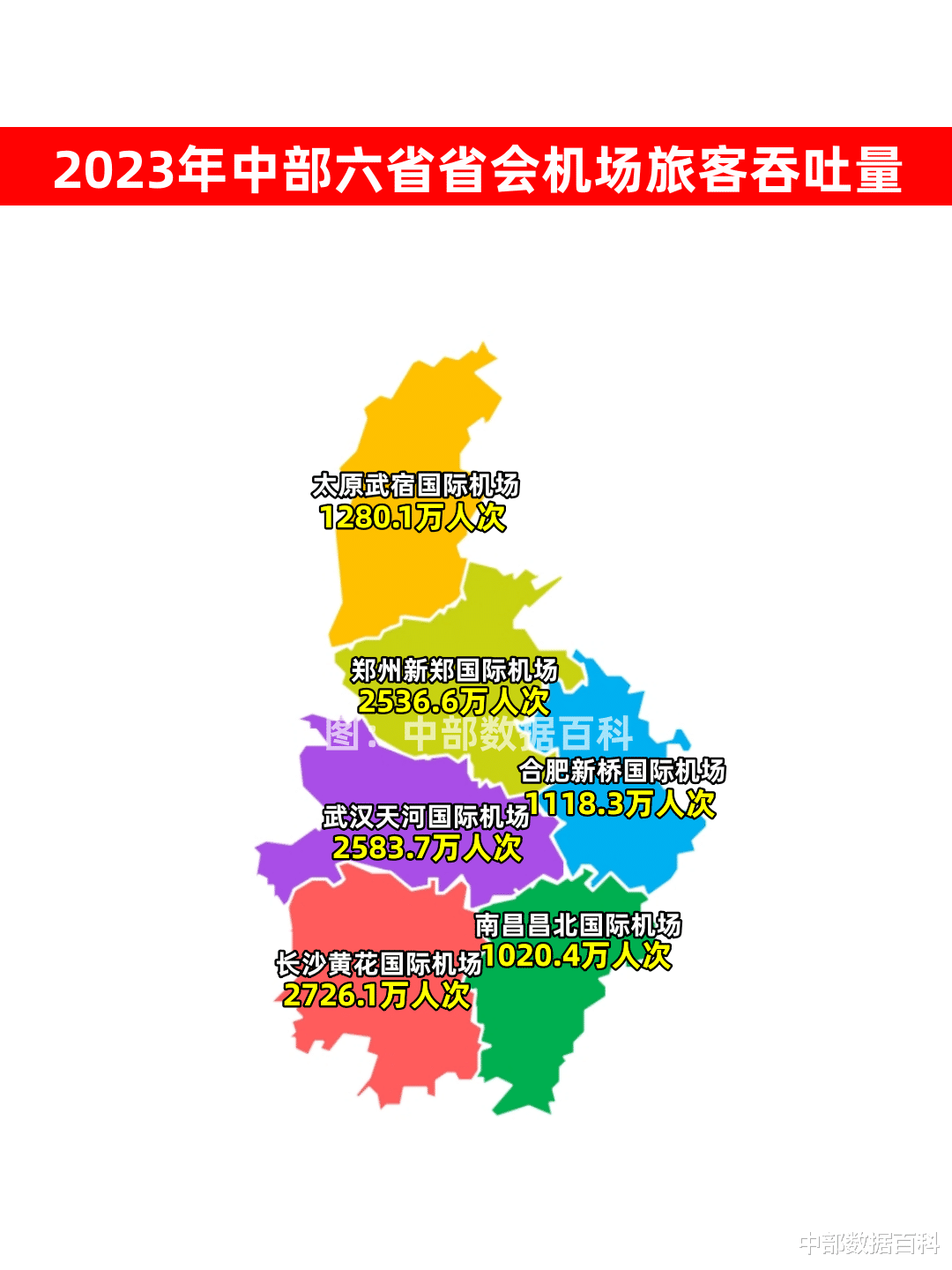 以下是2023年中部六省省会城市机场旅客吞吐量数据: