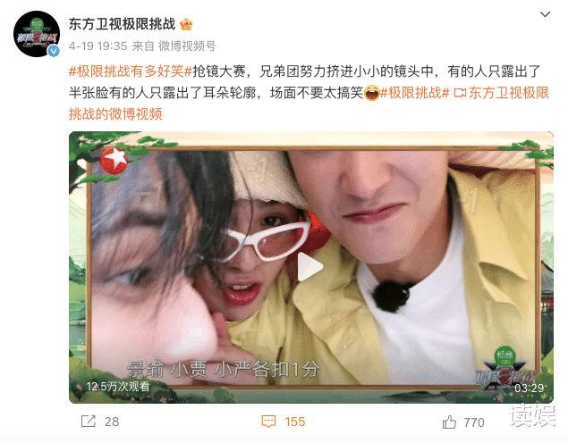 在这样的大环境下,平台与节目都在自救,着力探索更多的突围方式。东方卫视的微博官方账号近两个月高频发布《极限挑战》过往节目的高光片段,此举大概也是为了吸引品牌与观众的注意力;而在早前,《极限挑战》在IP变现与品牌合作上多有创新,或是在节目中以公益助农之名引入了入“直播带货”环节,或是在节目中设置“品牌植入挑战赛”,以此为品牌提供更直接的推广权益,以此交换更多的资源,但也一定程度上加剧了观众对于节目商业气息浓厚的印象。