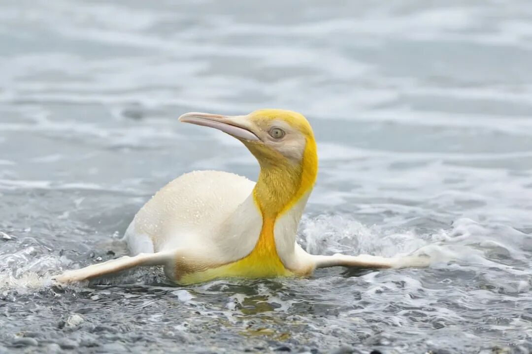 一位叫做伊夫.亚当斯的摄影师在南极洲附近一个名为南乔治亚岛的地方发现了一只十分罕见的动物。此时这名摄影师正在拍摄帝企鹅,南乔治亚岛上面生活的帝企鹅数量多达12万只。