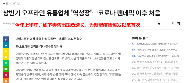线下零售表现不及线上图源:news.einfomax.co.kr