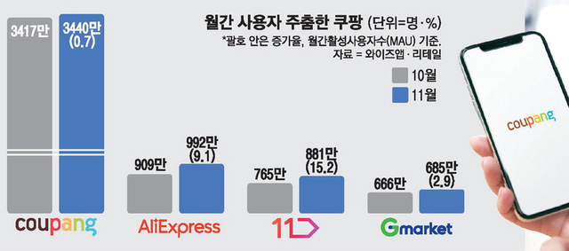 Coupang上个月用户增长放缓图源:mk.co.kr