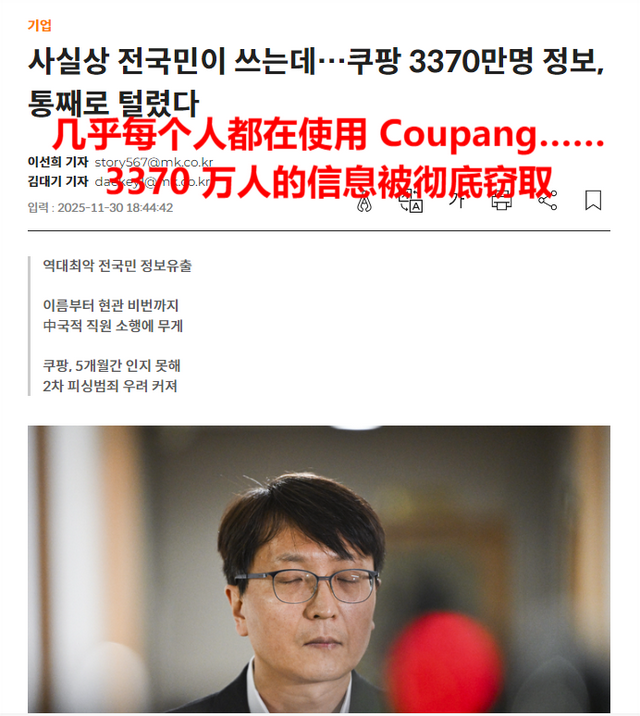 Coupang出现大规模信息泄露 图源:mk.co.kr