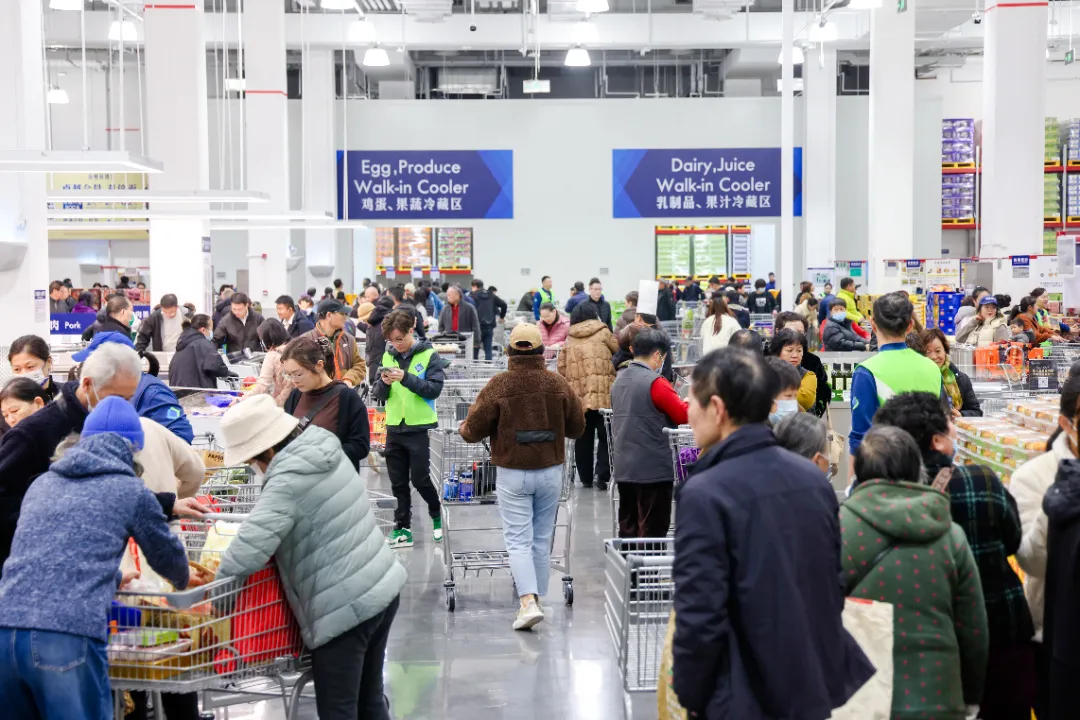 浦东东店位于利川路228号,延续了山姆标志性的仓储式购物环境,拥有约9米的层高、超3米宽的主通道,并配备超1000个停车位。开业当日,店内早早迎来众多热情的消费者。